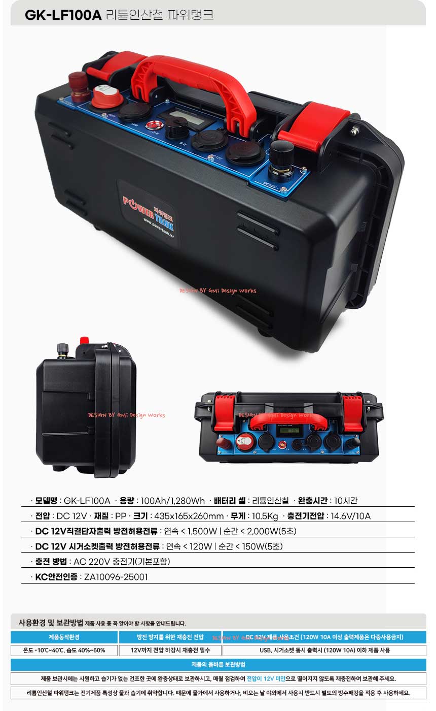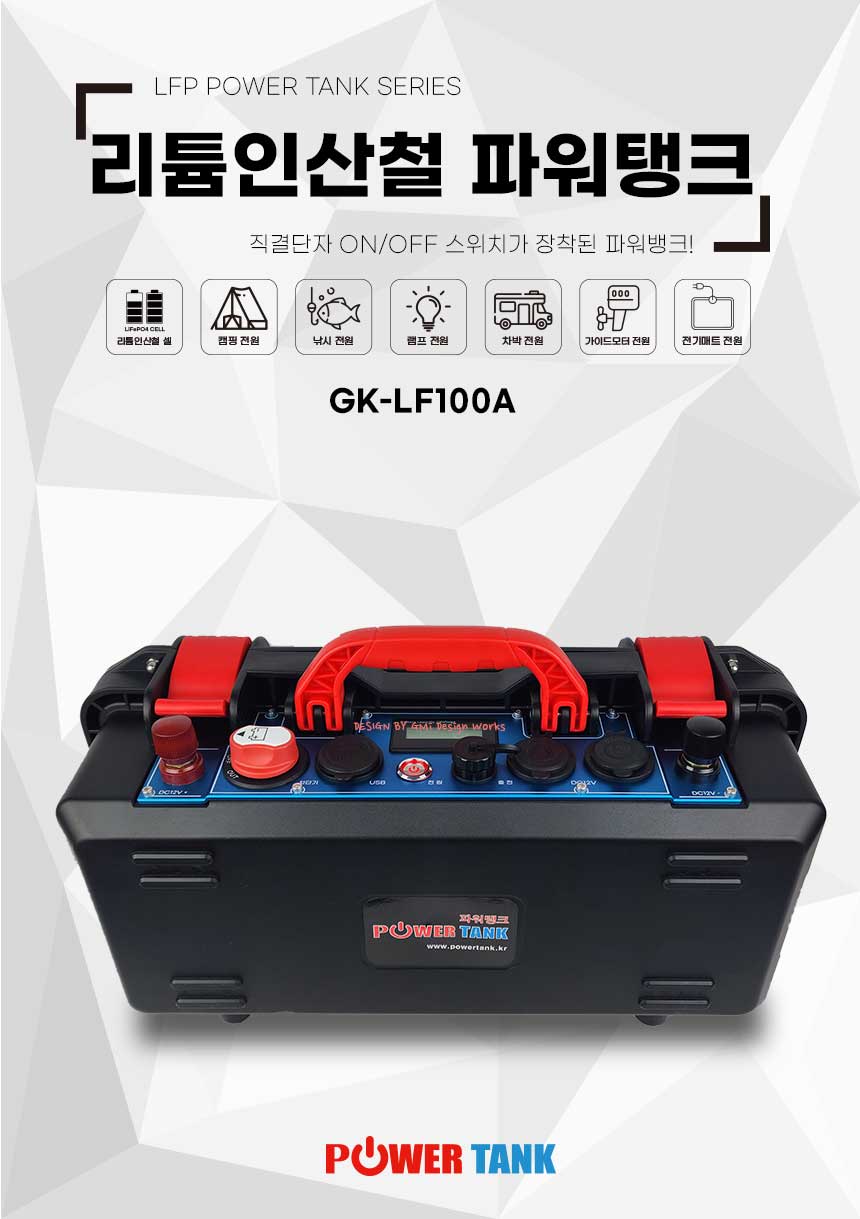 - home > 충전식 파워탱크 > 리튬인산철 파워탱크 > 100A 이상 - 200A 미만 > 파워뱅크 리튬인산철 GK-LF100A 1280Wh 12V